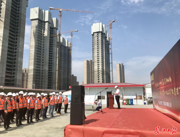 6月8日上午,位于經(jīng)開大道旁的車都?春臺(tái)里項(xiàng)目工地80余名一線建設(shè)者在辦公區(qū)上了一堂“微黨課”。即日起,黨史教育巡回展將在武漢建工集團(tuán)市內(nèi)12個(gè)重點(diǎn)工地巡回展出,持續(xù)至10月。