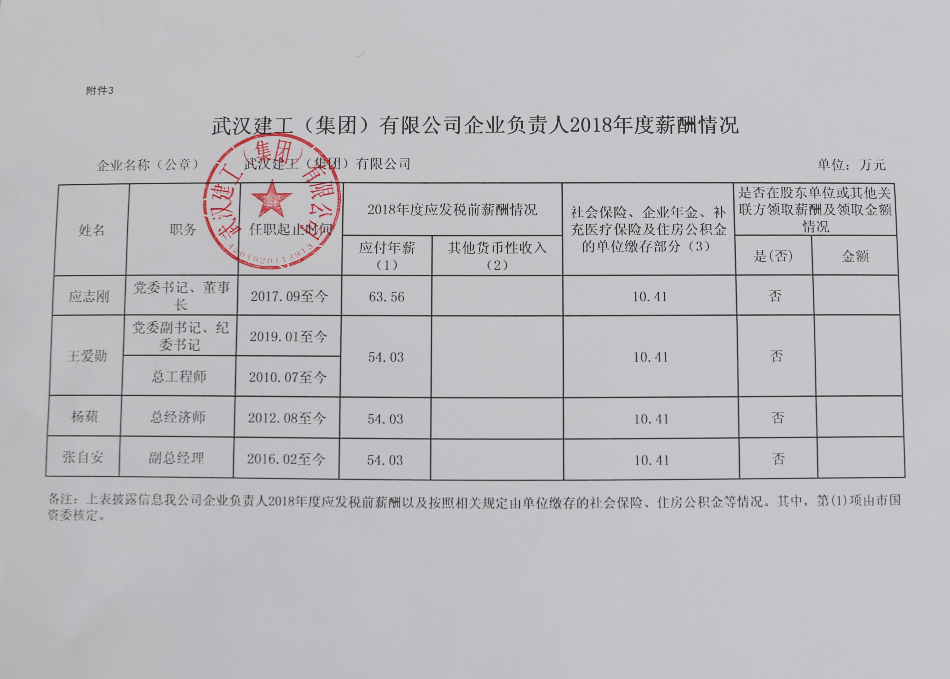 武漢建工(集團(tuán))有限公司企業(yè)負(fù)責(zé)人2018年度薪酬情況